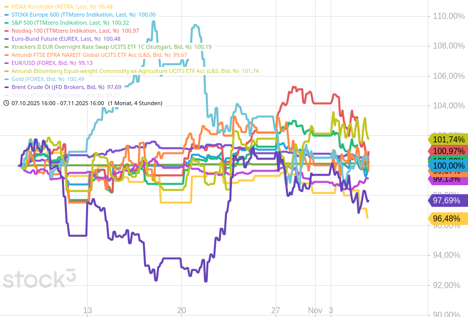 Schalten Sie durch die Gänge der Börsen und sehen Sie auf einen Blick, was zur Zeit angesagt ist. Die GearBoxx, betrachtet neben den großen Aktienindizes in Deutschland, Europa und den USA auch den Rentenmarkt, Rohstoffe, Währungen und den Immobilienmarkt in Europa.